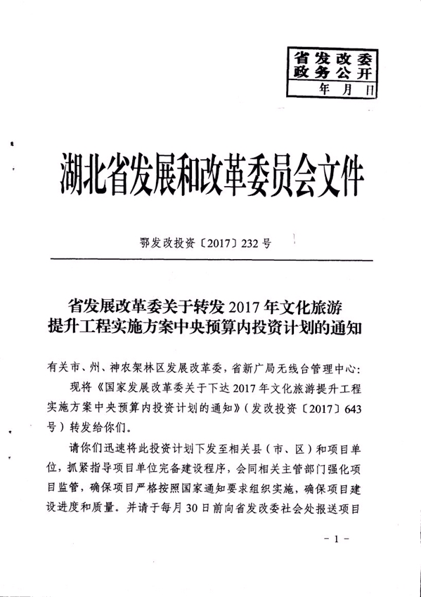 省發(fā)改委關(guān)于轉(zhuǎn)發(fā)2017年文化旅游提升工程實(shí)施方案中央預(yù)算內(nèi)投資計(jì)劃的通知