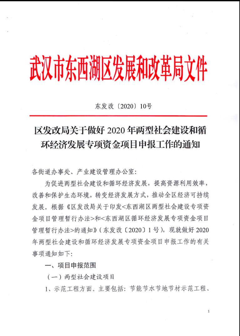 區(qū)發(fā)改局關(guān)于做好2020年兩型社會建設(shè)和循環(huán)經(jīng)濟(jì)發(fā)展專項資金項目申報工作的通知