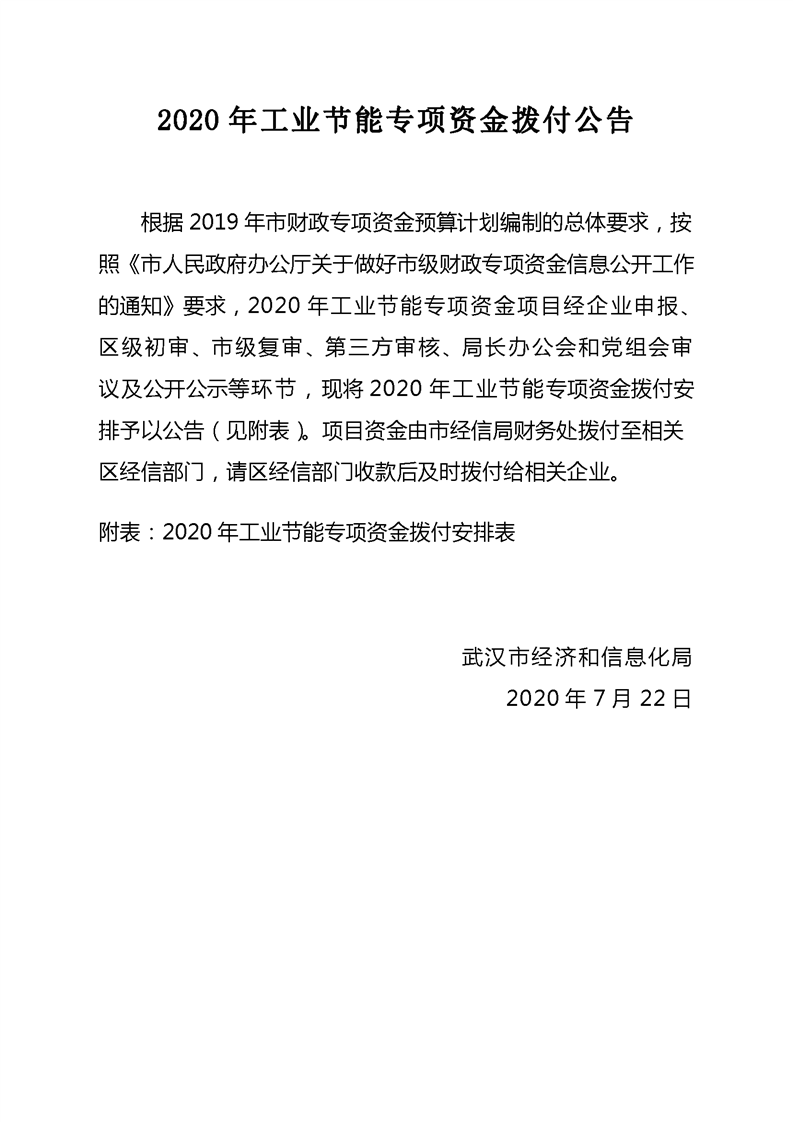 2020年工業節能專項資金撥付公告
