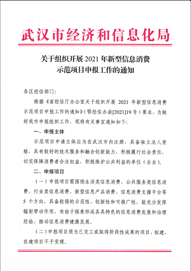 根據《市經信局關于組織開展2021年新型信息消費示范項目申報工作的通知》要求,為做好我申報組織工作,現將有關事宜通知如下:
